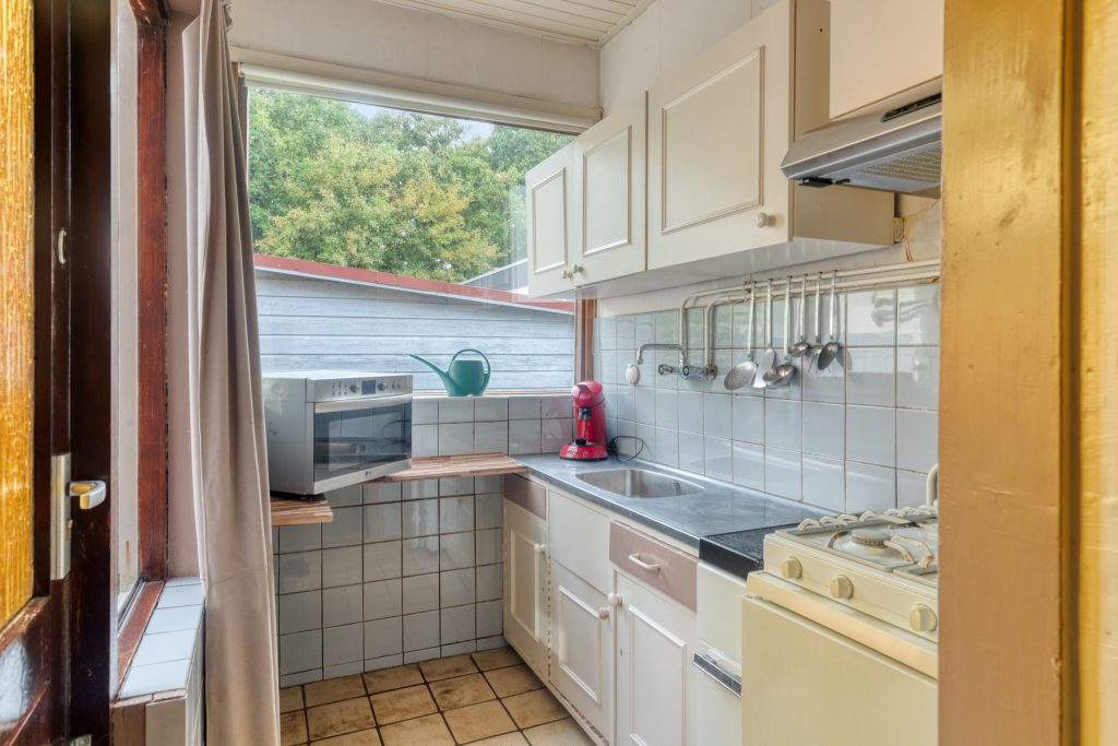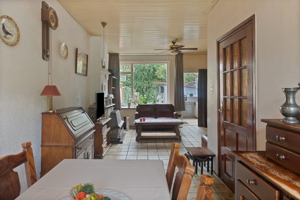 Via de ruime voortuin betreedt u de woning en komt u in de hal, voorzien van toilet, meterkast en trapopgang naar de eerste verdieping. Vanuit hier heeft u toegang tot de woonkamer en eetkamer. De ruimte is licht en flexibel in te delen, ideaal voor zowel een gezellige zithoek als een grote eettafel. Aansluitend bevindt zich de dichte keuken. Deze is eenvoudig ingericht en aan vernieuwing toe, maar biedt volop mogelijkheden om er bijvoorbeeld een moderne woonkeuken van te maken met uitzicht op de tuin.