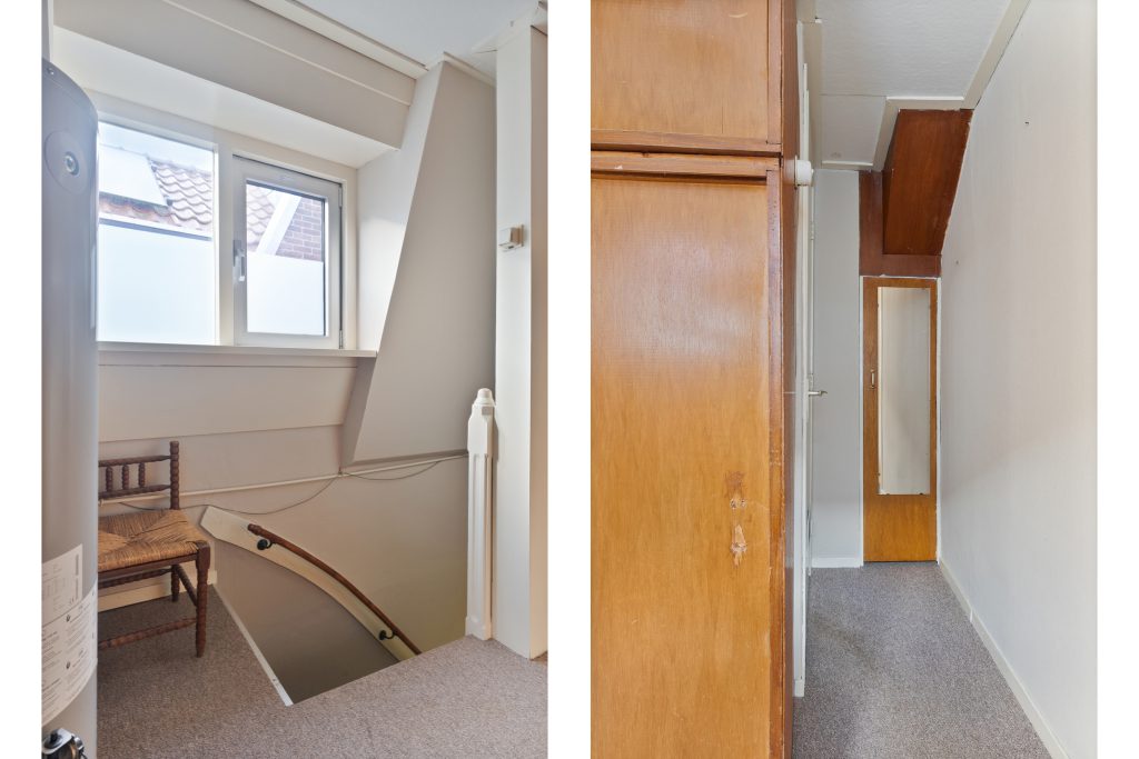 Op de bovenverdieping vindt u twee ruime slaapkamers, beide voorzien van vaste kasten. De overloop beschikt eveneens over bergruimte dankzij extra vaste kasten en hier bevindt zich de gasboiler. De badkamer beschikt over een ligbad en de aansluiting voor de wasmachine.