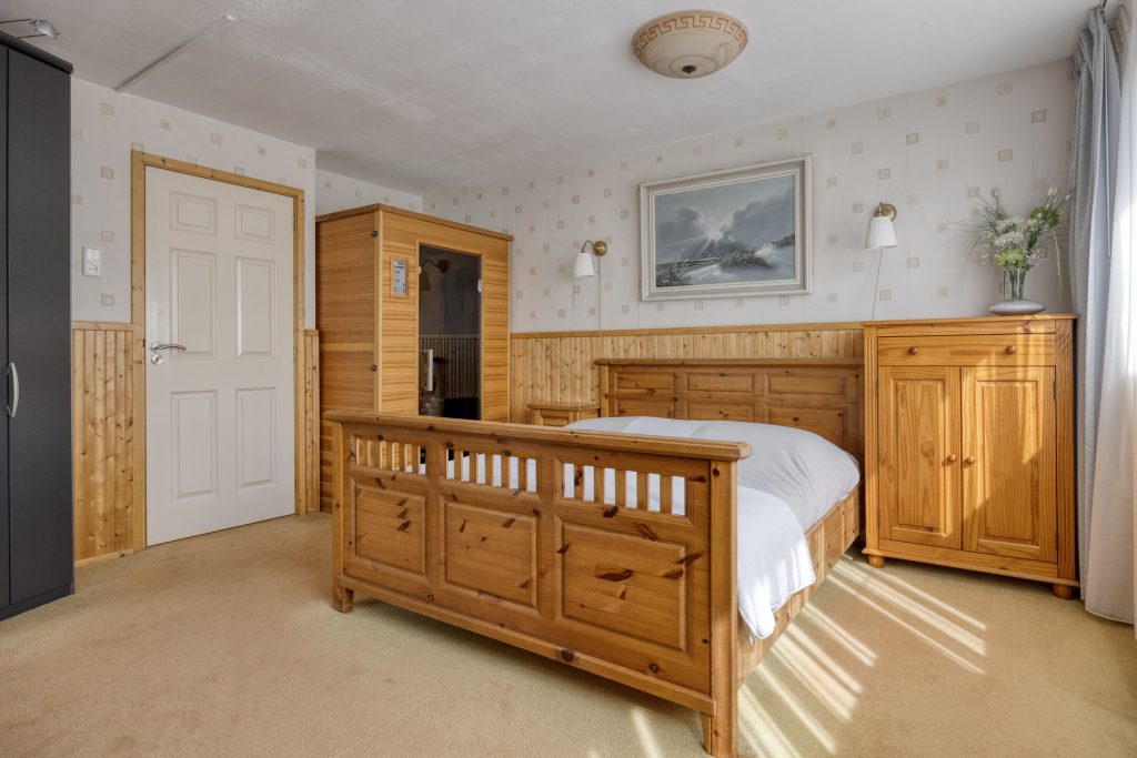 Op de eerste verdieping vindt u een ruime overloop, twee slaapkamers en een badkamer. De hoofdslaapkamer is royaal en was oorspronkelijk opgesplitst in 2 kamers, wat eenvoudig weer te realiseren is. De badkamer is compleet met een ligbad, douchecabine met handdouche, tweede toilet, wastafel en designerradiator. De badkamer is daarnaast voorzien van vloerverwarming. De aanwezigheid van een infrarood sauna maakt deze verdieping nét even extra bijzonder.