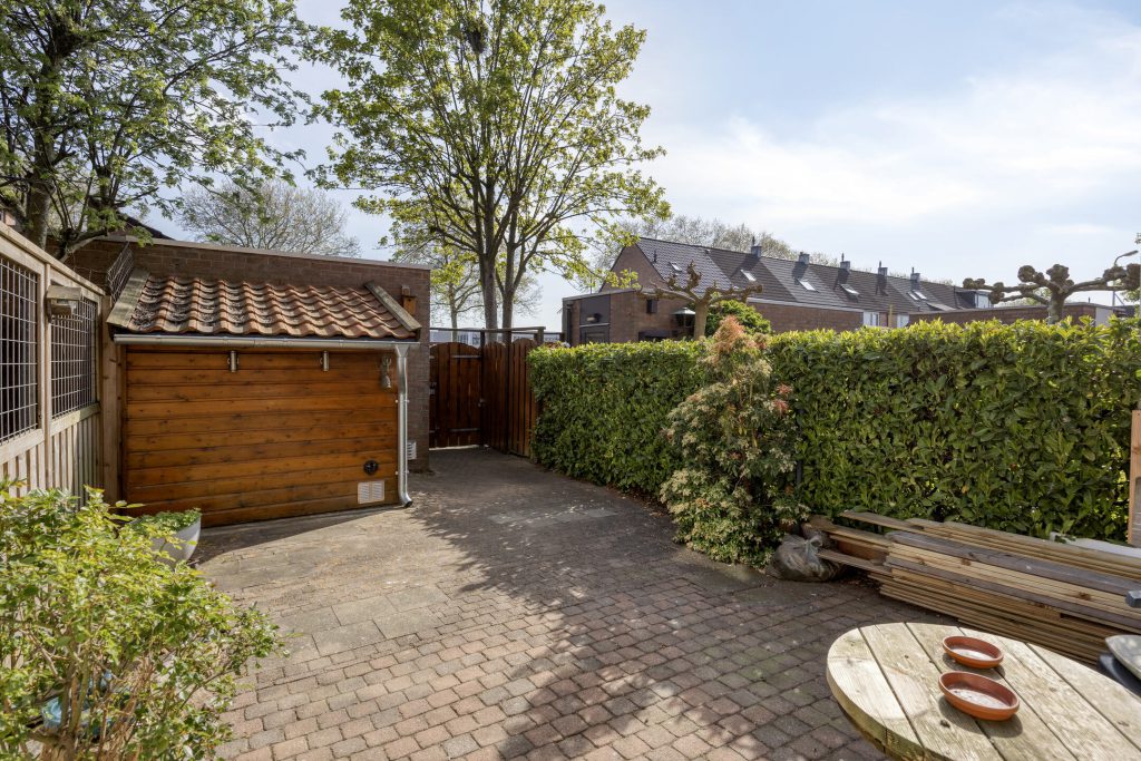 Ook buiten is het goed voor elkaar. De achtertuin is onderhoudsvriendelijk aangelegd, beschikt over een houten en stenen berging en een achterom. Deze heerlijke tuin biedt voldoende privacy om ongestoord te genieten. Dankzij de zonwering zit u hier ook op warme dagen comfortabel.