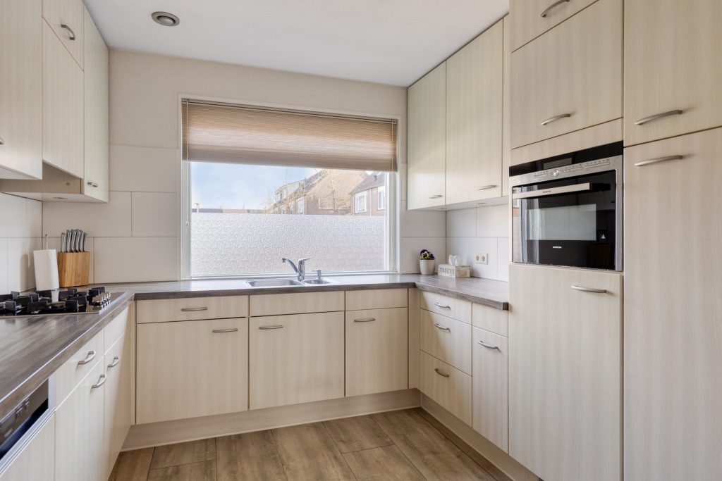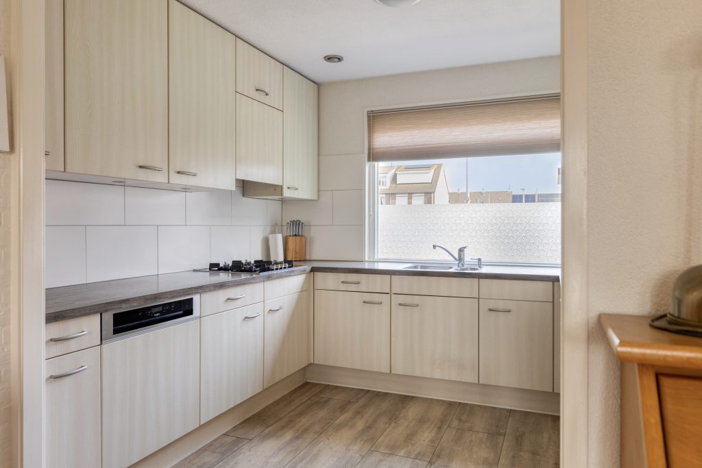 De open keuken sluit naadloos aan op de woonkamer en is van alle gemakken voorzien. U treft hier diverse inbouwapparatuur, waaronder een gaskookplaat, vaatwasser,