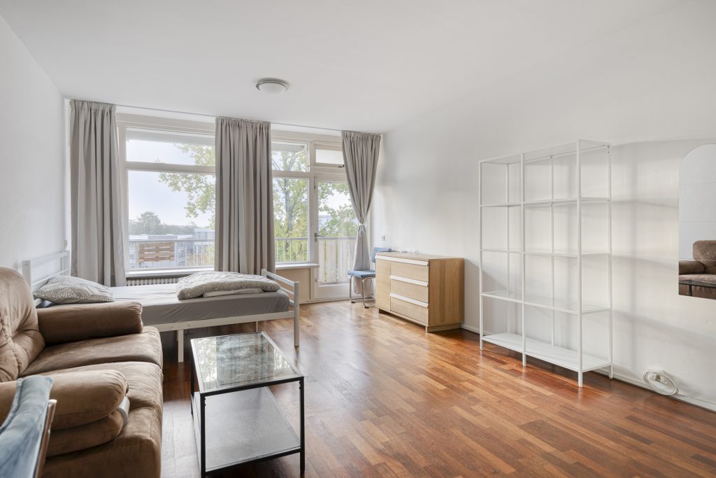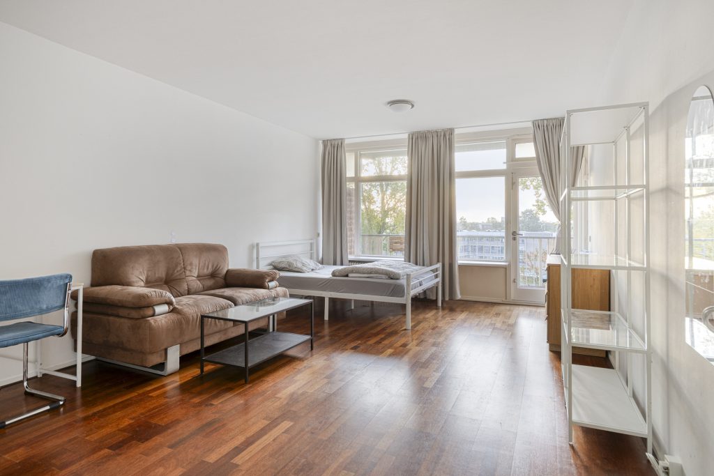 De woonkamer is het hart van het appartement, dit is een lichte ruimte voorzien van houten vloerdelen en een groot raam dat zorgt voor veel natuurlijk licht. Vanuit de woonkamer heeft u toegang tot het balkon, gelegen op het zuidoosten, waar u heerlijk van de zon kunt genieten.