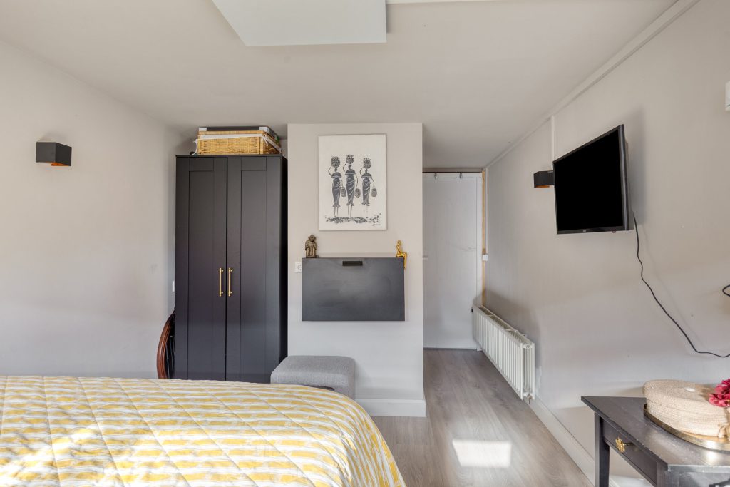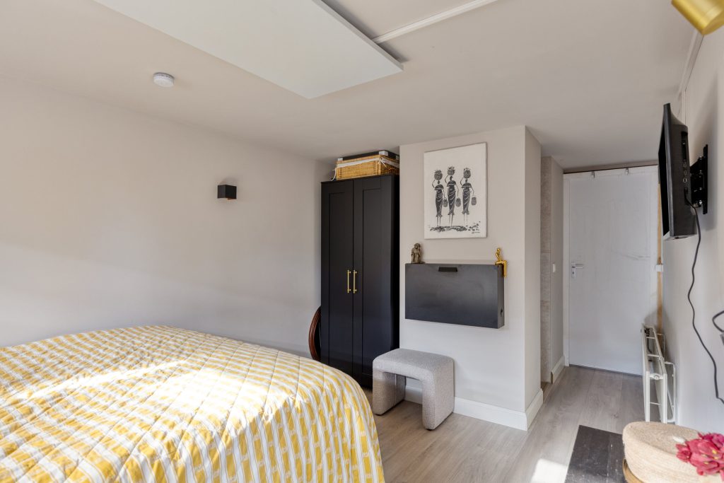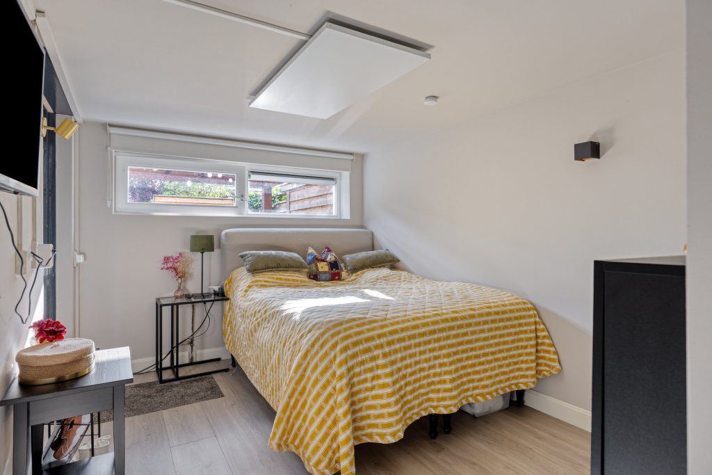 Uniek is de (gedeeltelijke) omgebouwde garage, die nu dienstdoet als extra slaapkamer, maar wat ook ideaal is als kantoor, speelruimte of praktijk aan huis. Hier vindt u een aparte badkamer met houten meubel met waskom, toilet, en infraroodpanelen voor comfortabele warmte.