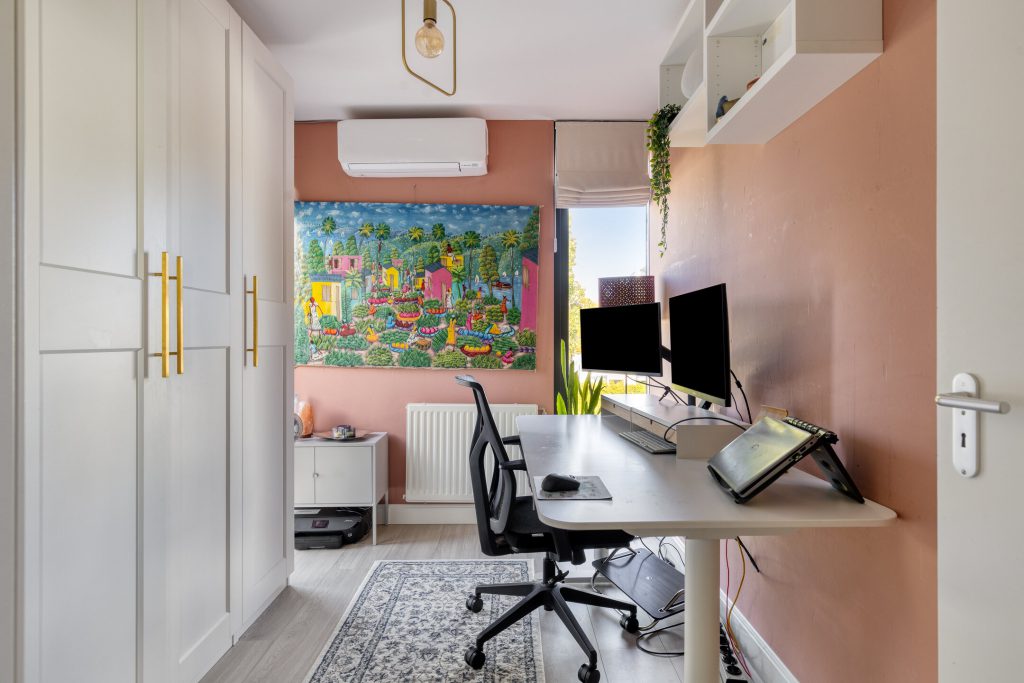 Op de eerste verdieping bevinden zich vier ruime slaapkamers, allen voorzien van laminaatvloeren, strakke stucwanden en airconditioning. Eén van de kamers beschikt bovendien over een ruime schuifdeurkastenwand, perfect voor kleding en opbergruimte.