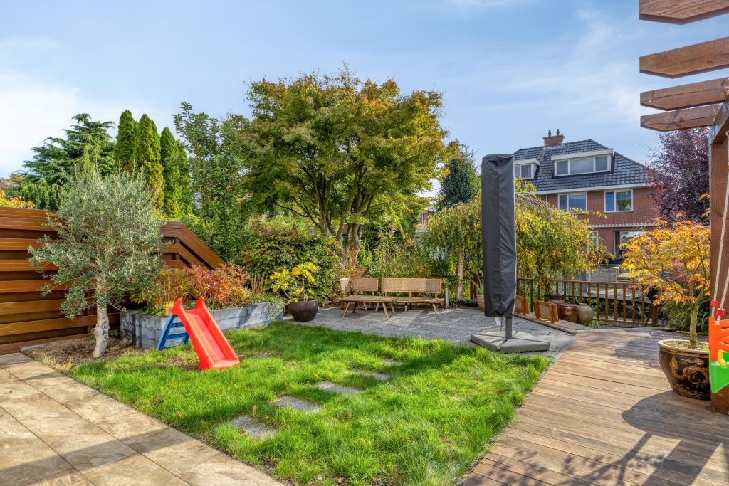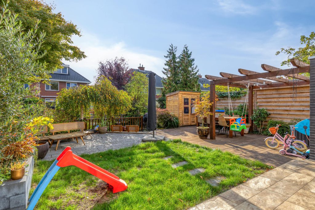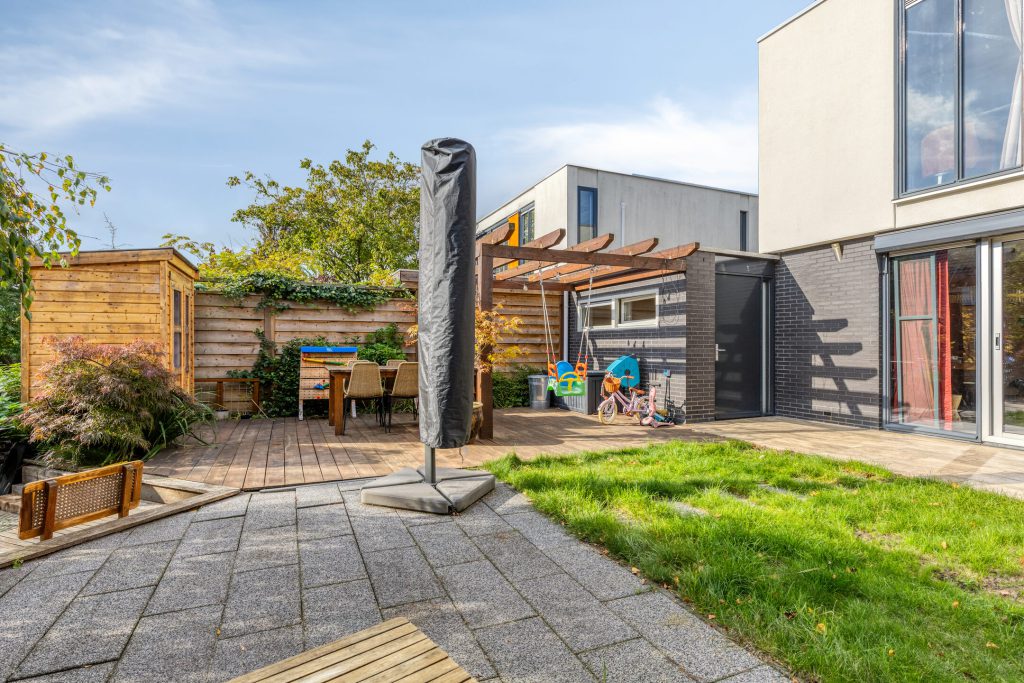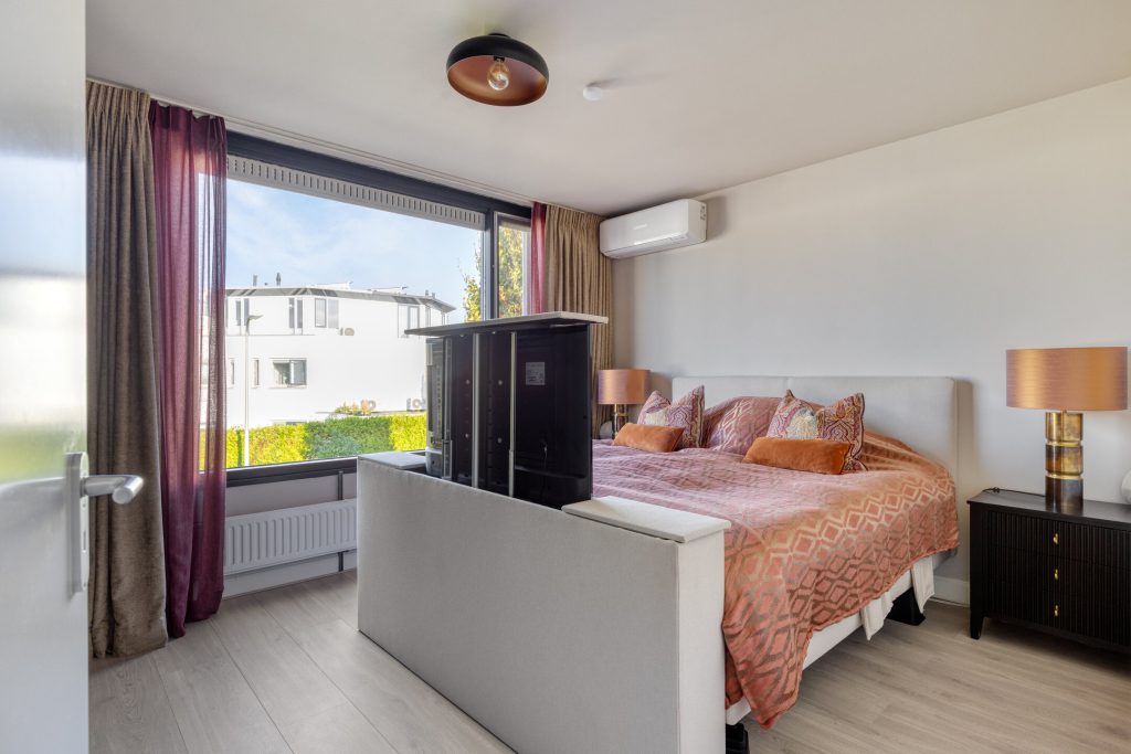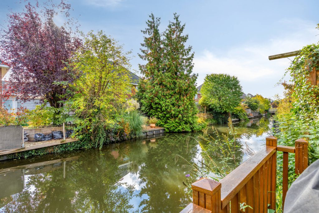 – Ruime tuin aan het water met berging en elektrische zonwering;