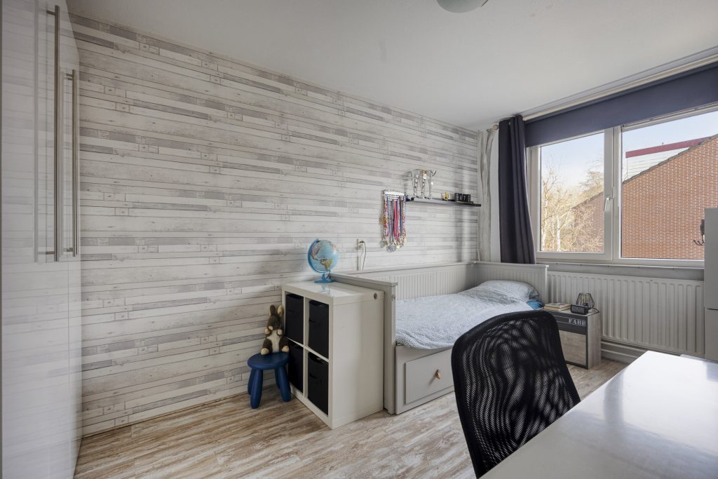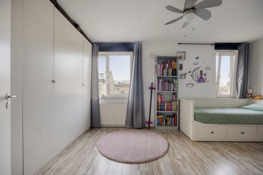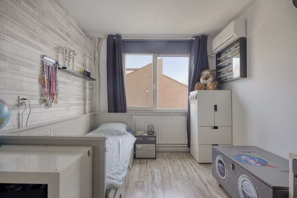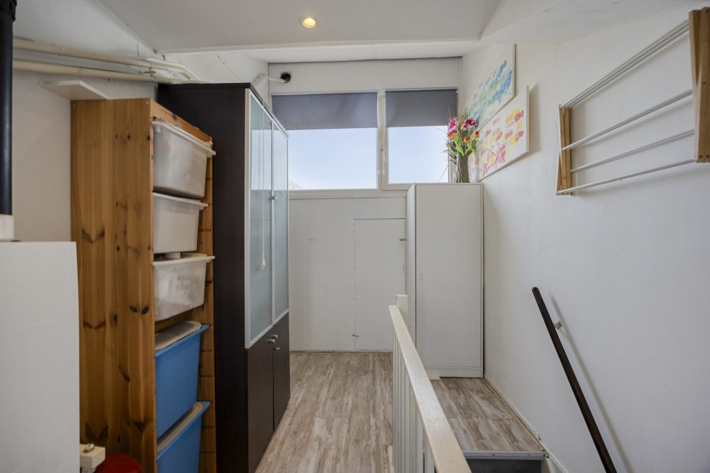 De tweede verdieping biedt een volwaardige vierde slaapkamer, mede dankzij de dakkapel uit 2019. Daarnaast vindt u op de overloop de aansluitingen voor de wasmachine en droger, knieschotten voor extra bergruimte, een mechanische ventilatie-unit en de CV-combiketel. Daarnaast is deze verdieping tevens voorzien van airconditioning en een elektrisch rolluik aan de achterzijde.