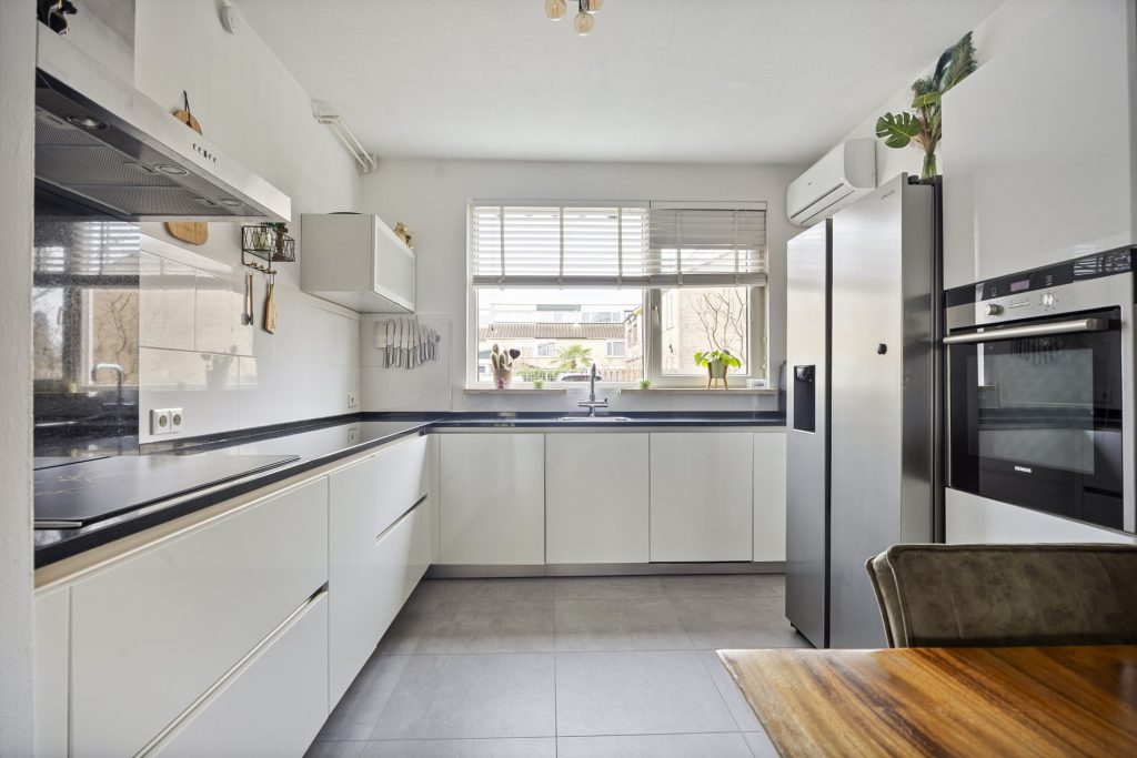 De moderne open keuken is uitgerust met een granieten werkblad en voorzien van divers inbouwapparatuur, waaronder een 5 pits inductiekookplaat, afzuigkap, vaatwasser, oven en een kokend waterkraan. Daarnaast is de ruimte voorzien van een airconditioning.
