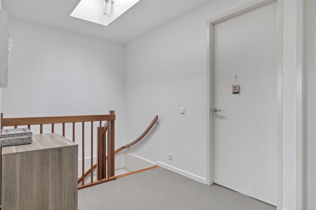 Op de overloop bevinden zich twee elektrische lichtkoepels. De overloop geeft toegang tot 4 slaapkamers en de badkamer. Alle slaapkamers zijn licht, ruim en voorzien van een airco. De twee slaapkamers aan de achterzijde beschikken over rolluiken. In de slaapkamer naast de trap bevindt zich een koof waarin de vloerverwarming verdeler en het rookkanaal zijn weggewerkt. De naastgelegen achterkamer is voorzien van een vaste kastenwand.