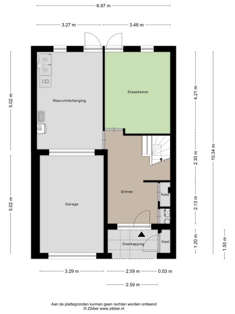Buiten is de entree voorzien van een overkapping en een vaste kast met daarin de waterontharder. Binnen is een ruime hal met gietvloer, meterkast en nog een vaste kast. De hal geeft u toegang tot de slaapkamer, de dubbele garage en de trap naar de eerste verdieping. De slaapkamer is voorzien van een laminaat vloer en een deur die u toegang geeft tot de achtertuin. De zeer ruime dubbele garage is voorzien van een elektrische garagedeur, de opstelplaats voor de Nefit HR combiketel, wasmachine aansluiting en een deur die u toegang geeft tot de achtertuin.