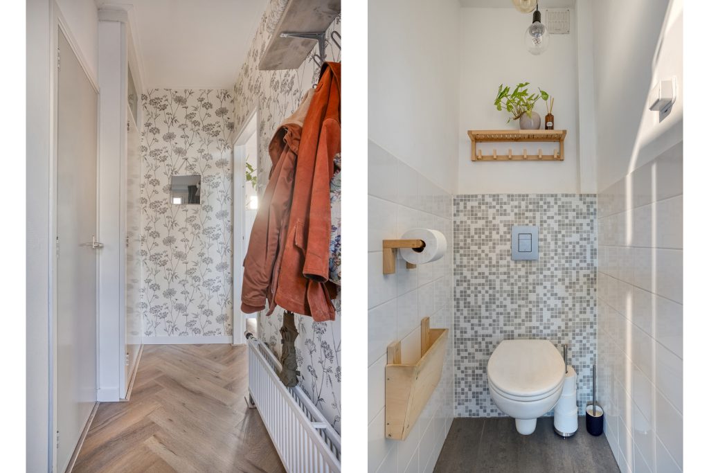 Via de entree komt u in de hal met meterkast, voorzien van twee aardlekschakelaars en acht groepen. Vanuit de hal heeft u toegang tot de trapkast, het toilet en de woonkamer.