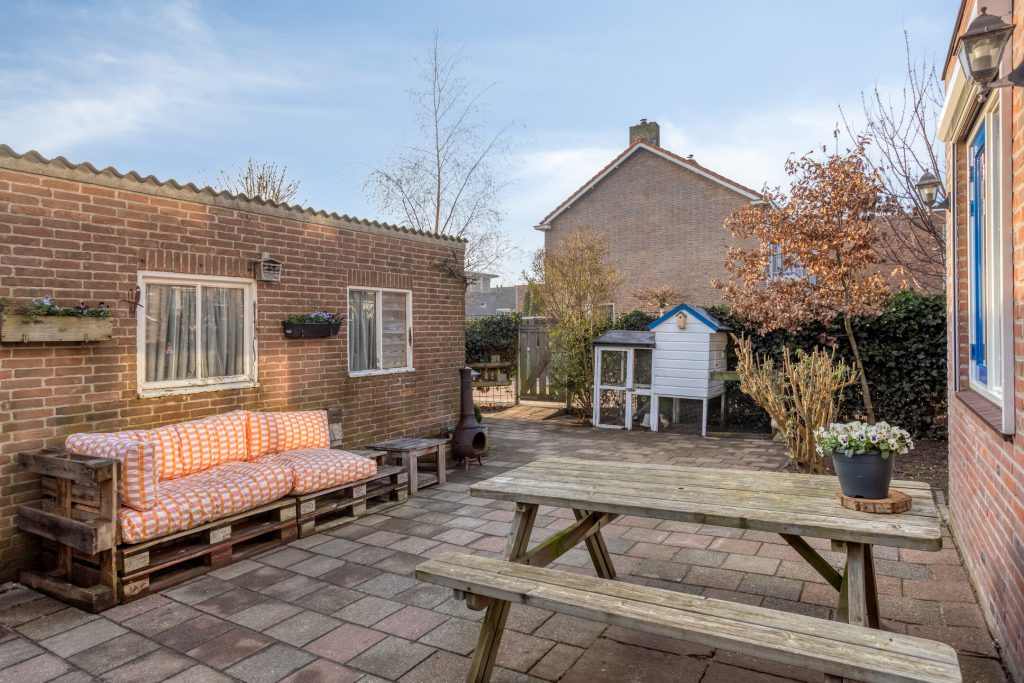 De woning beschikt over een voortuin op het noordwesten en een royale zonnige zij- en achtertuin op het zuiden, waar u op verschillende plekken fijne zitjes vindt om op elk moment van de dag van de zon te genieten. In de achtertuin staat een vrijstaande stenen berging met elektra, die eventueel kan worden omgebouwd tot een garage. Naast de achterdeur bij de aanbouw is een wateraansluiting aanwezig. Daarnaast is er de mogelijkheid om in de zijtuin een eigen parkeerplaats te realiseren.