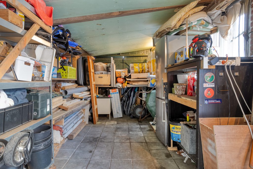 – Fijne achtertuin op het zuiden met vrijstaande stenen berging, hier kan een garage gerealiseerd worden;