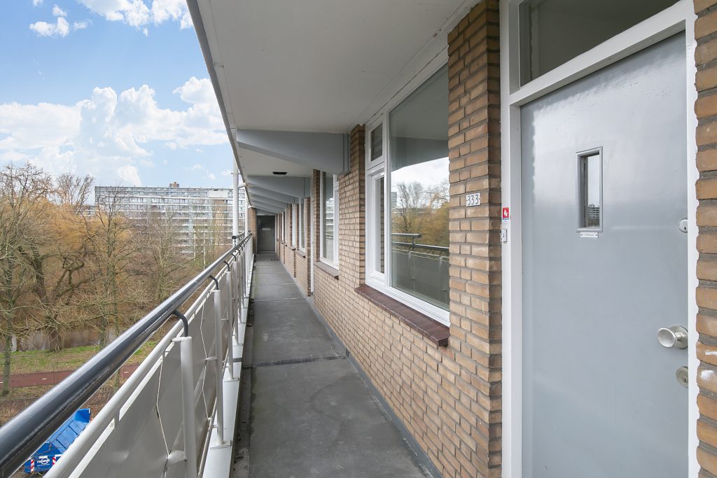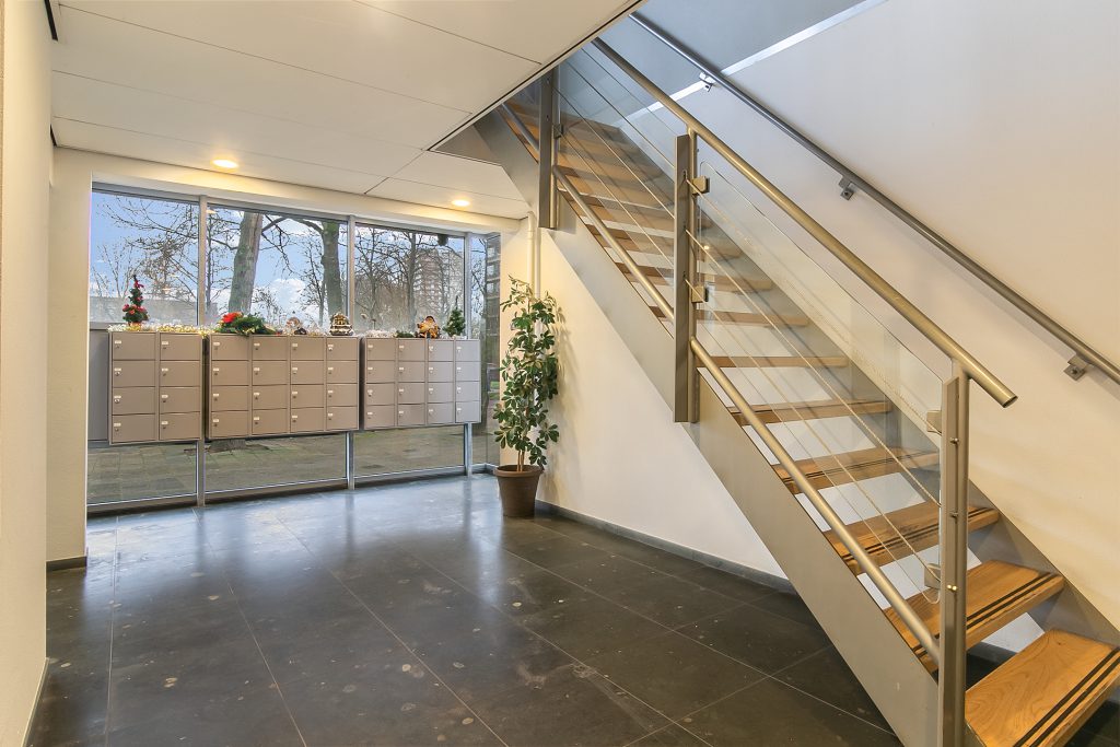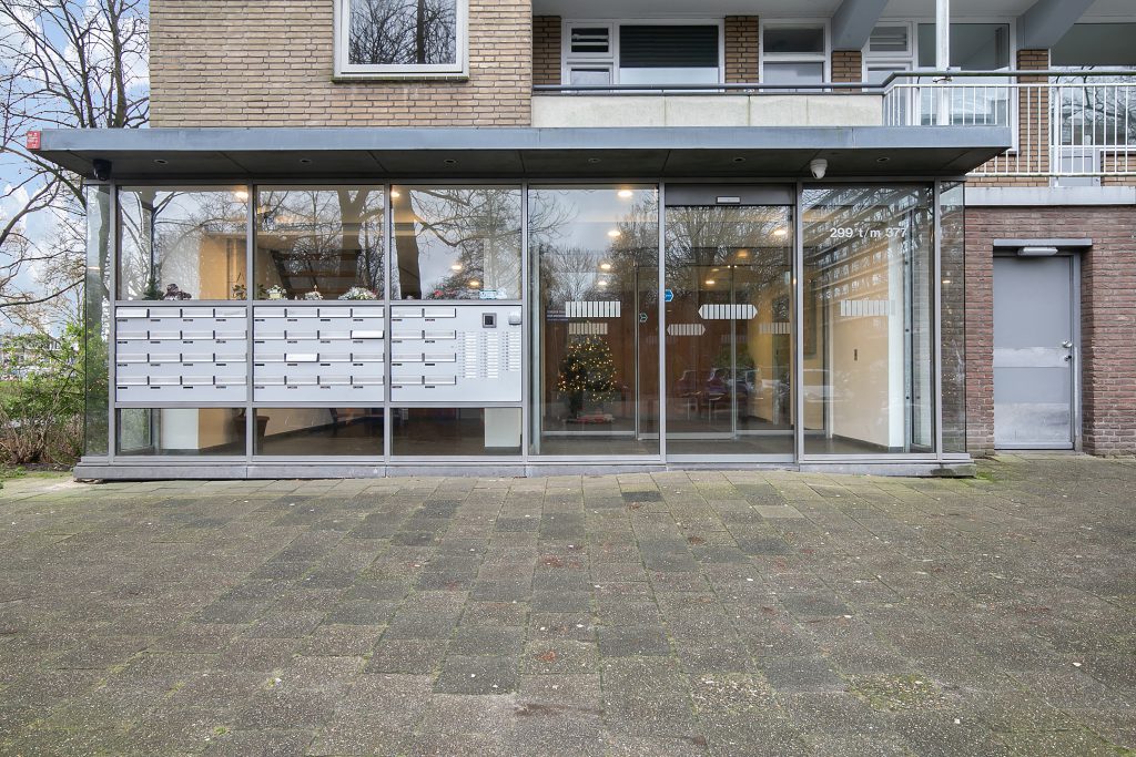 Via de afgesloten entree, voorzien van een belbord en brievenbussen, heeft u toegang tot het appartement op de vierde verdieping via de lift of het trappenhuis. Vanuit dezelfde entree bereikt u ook de gezamenlijke bergingen, ideaal om uw fiets veilig te stallen of extra spullen overzichtelijk op te bergen.