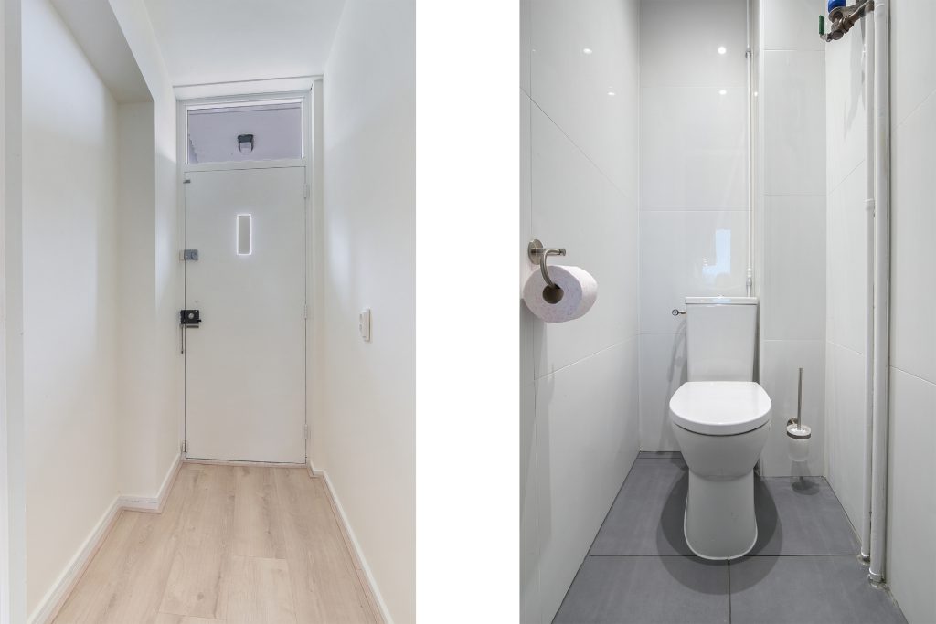 Bij binnenkomst komt u in de ruime hal, die toegang biedt tot alle vertrekken. In de hal bevindt zich tevens een vernieuwd (2024) separaat toilet met fonteintje.