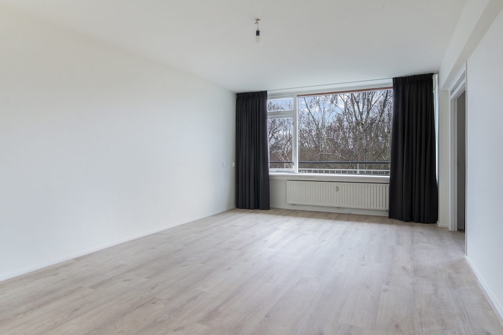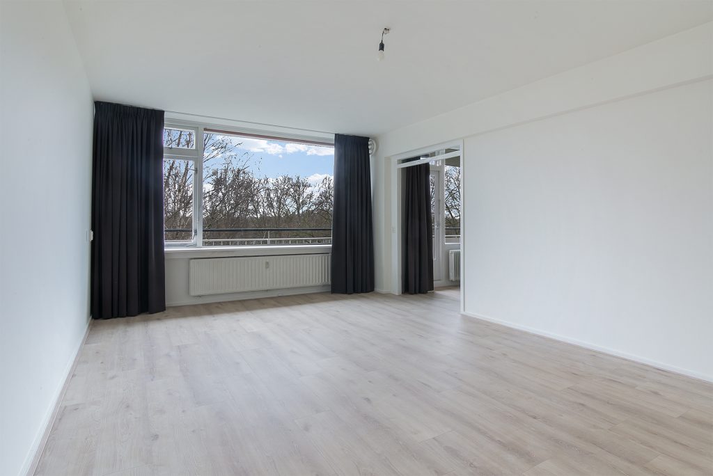 De ruime living is opgedeeld in een woon-en eetgedeelte en voorzien van een laminaatvloer en stucwerkwanden. Praktische inbouwkasten zorgen voor extra opbergruimte en de grote raampartijen zorgen voor een prettig lichtinval. Vanuit de eetkamer is het balkon bereikbaar. Dankzij de gunstige zonligging en een groen uitzicht is dit balkon de ideale plek om te genieten!