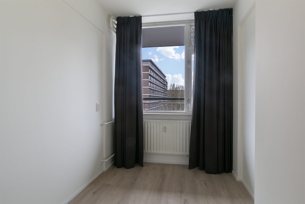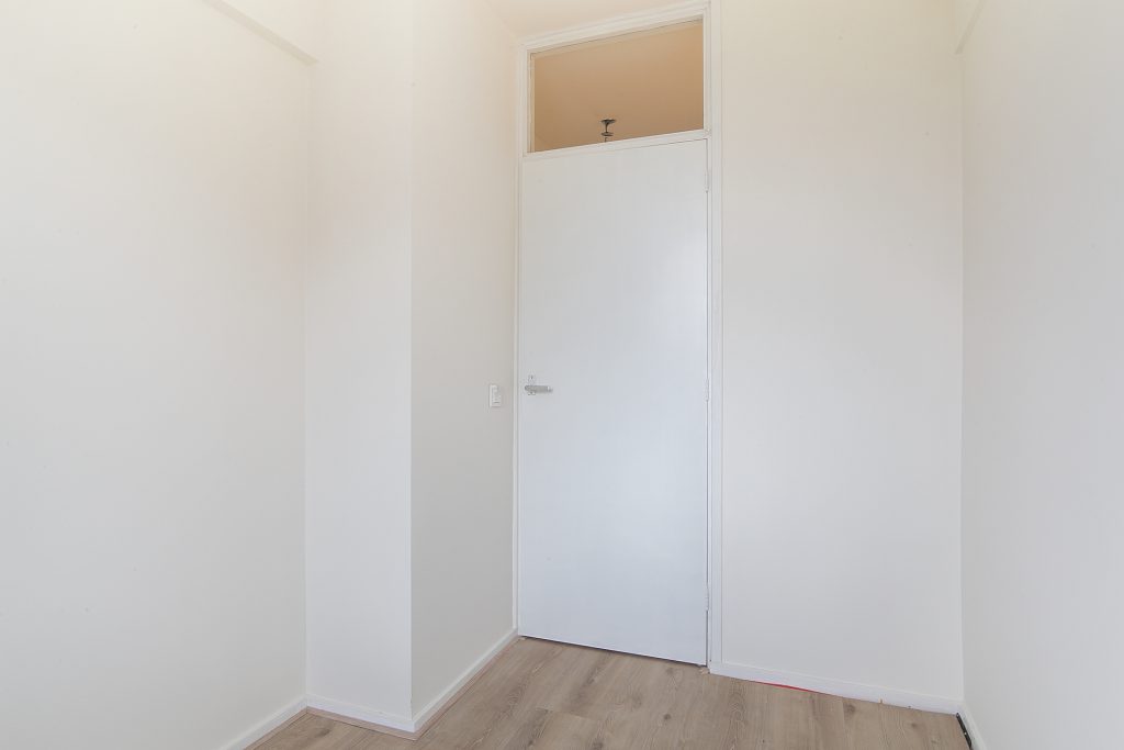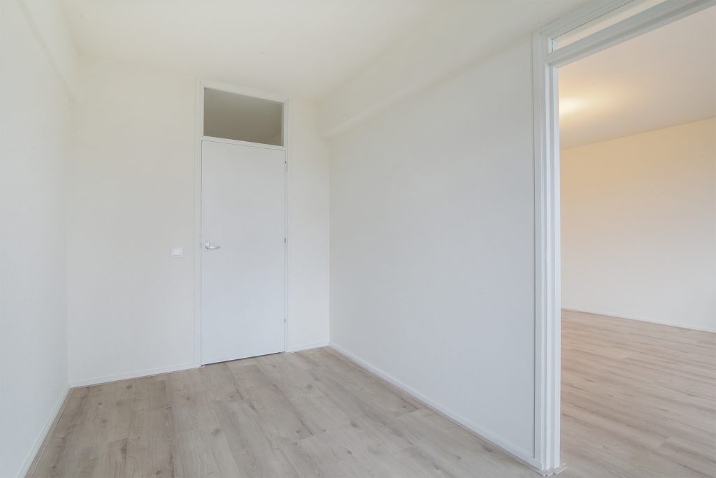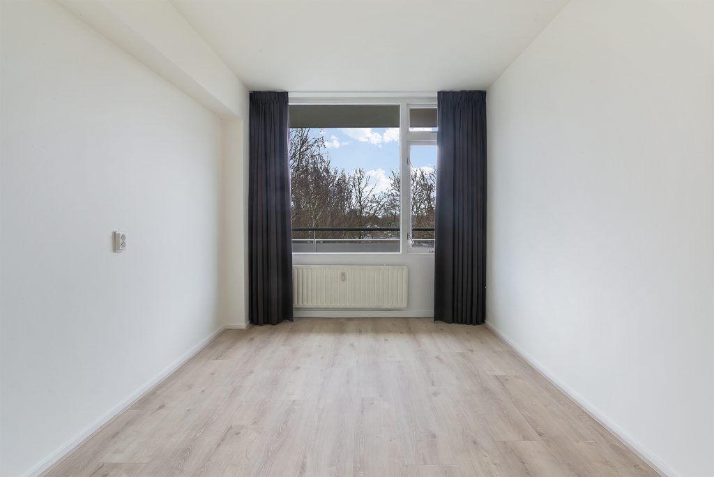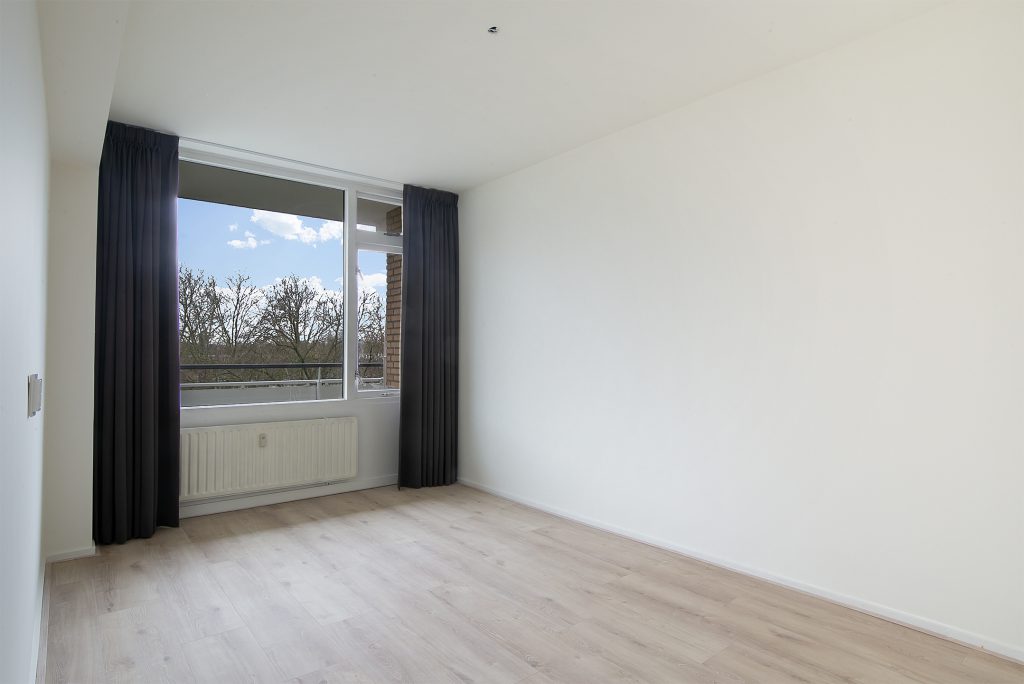 Het appartement beschikt over maar liefst drie slaapkamers, allen netjes afgewerkt met laminaatvloeren, stucwerkwanden en raamdecoratie. De slaapkamer aan de voorzijde is voorzien van praktische inbouwkasten, waardoor er voldoende opbergruimte beschikbaar is.