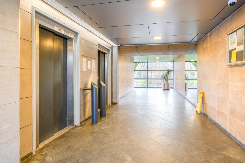 Centrale, afgesloten entree voorzien van brievenbussen en toegang tot de lift, bergingen en het trappenhuis.