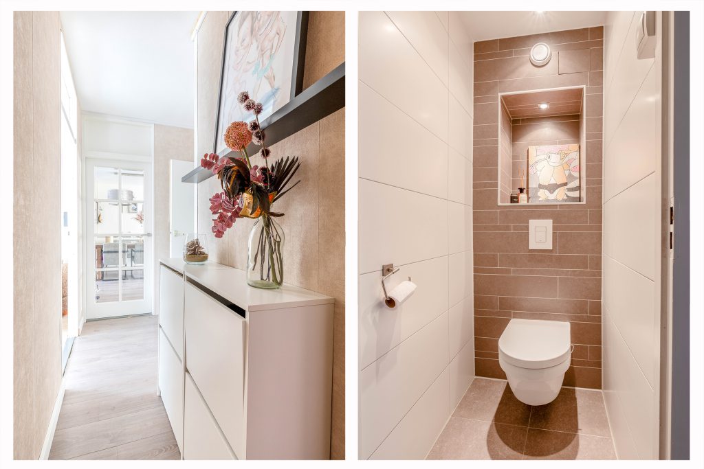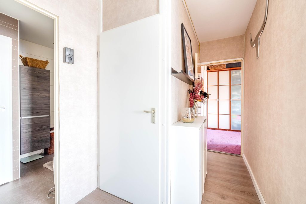 Via de ruime hal zijn de drie slaapkamers, de badkamer en het separate toilet bereikbaar. De badkamer is modern afgewerkt en voorzien van een inloopdouche, wastafelmeubel en aansluiting voor wasmachine en droger.