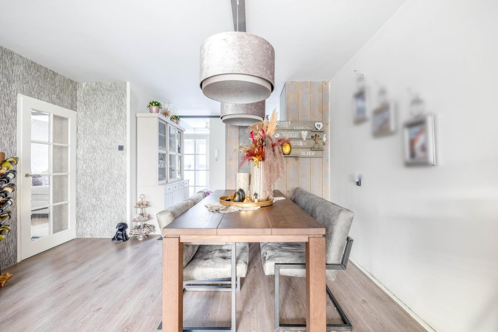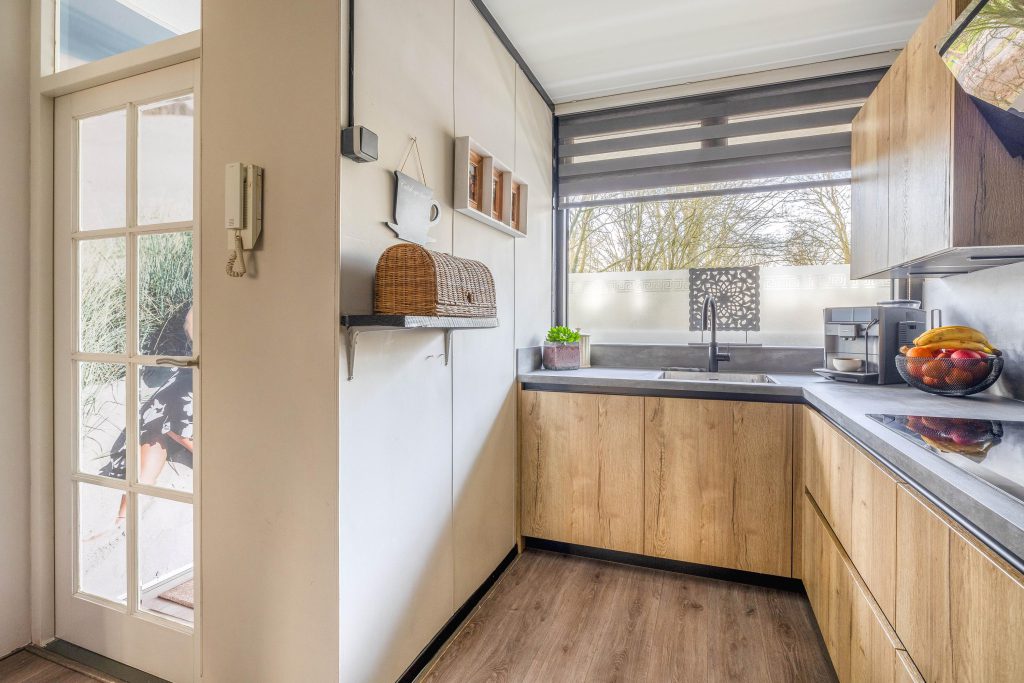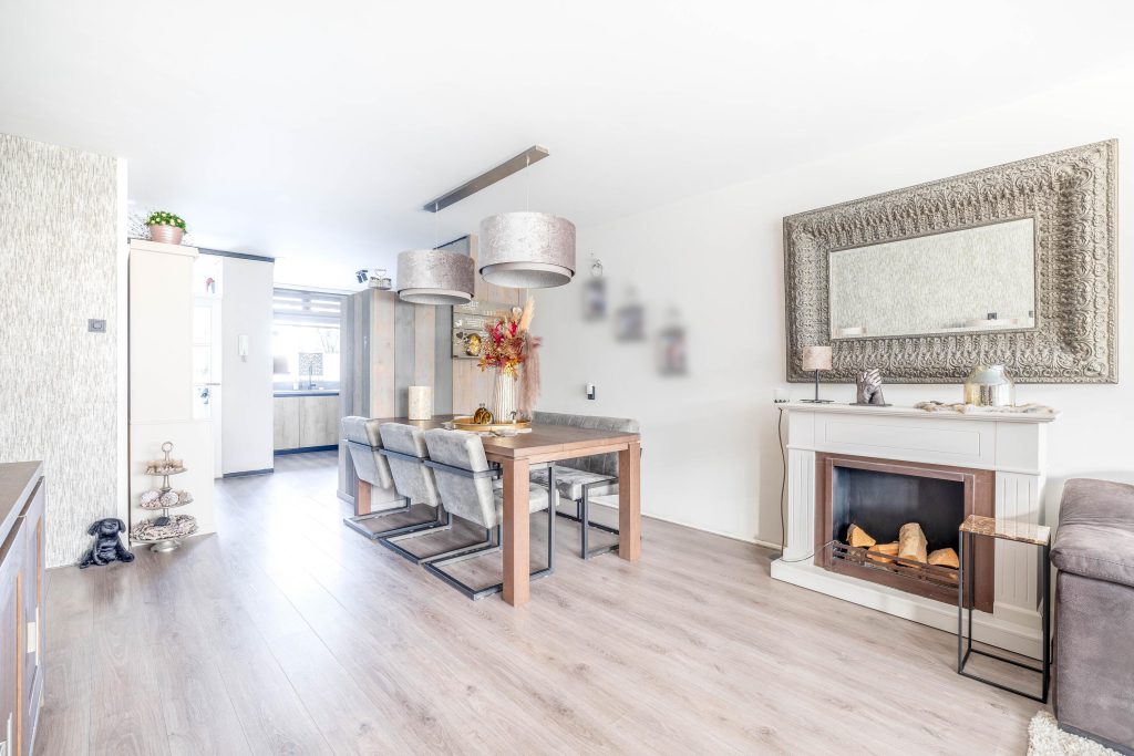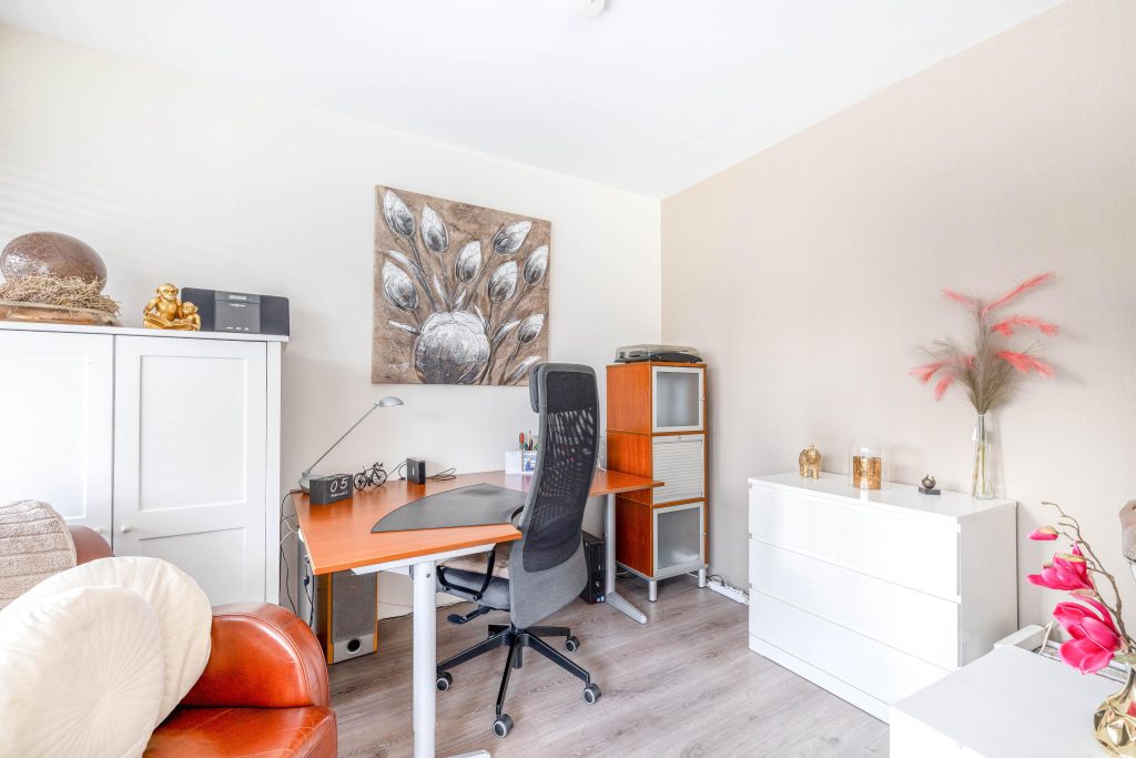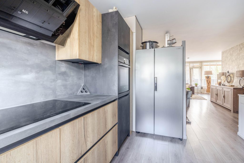 The apartment has a living area of approximately 108 m² with a practical layout. The bright living room with a semi-open kitchen offers plenty of space and comfort. The room at the rear can be used for various purposes. The kitchen is equipped with modern built-in appliances, including a Quooker, combi oven, electric hob with extractor fan, dishwasher, and a large American-style fridge.