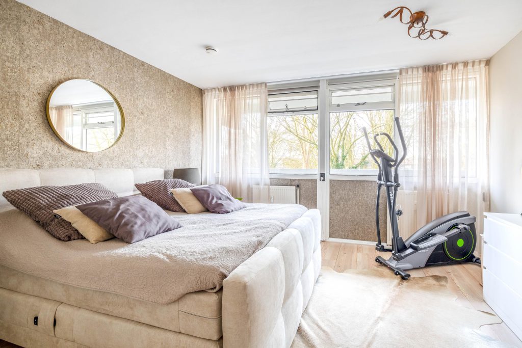 Het appartement heeft een woonoppervlakte van circa 108 m² met een praktische indeling. De lichte woonkamer met halfopen keuken biedt veel ruimte en comfort. De kamer aan de achterzijde is voor diverse doeleinden geschikt. De keuken is voorzien van moderne inbouwapparatuur, waaronder een Quooker, combi-oven, elektrische kookplaat met afzuigkap, vaatwasser en een grote Amerikaanse koelkast.