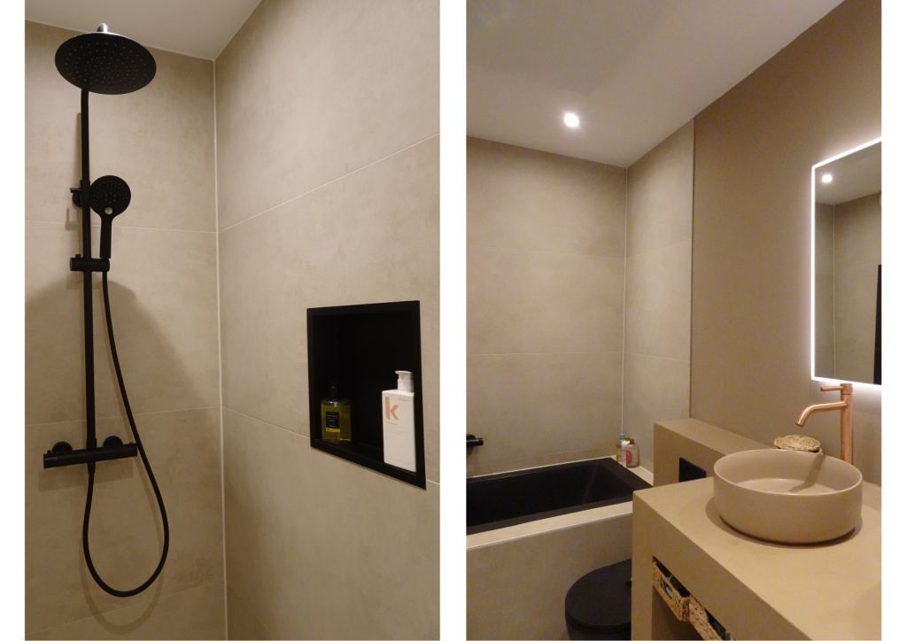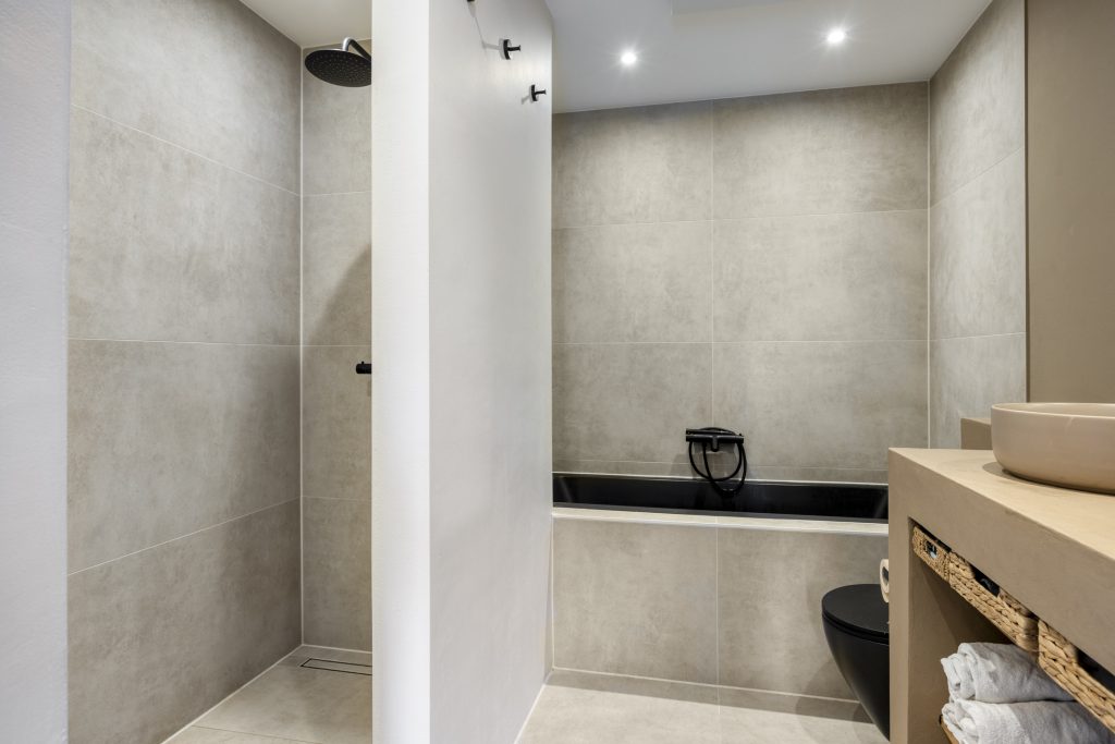 De slaapkamer beschikt over een badkamer en-suite met een luxe uitstraling. Deze is voorzien van een ligbad, inloopdouche met regendouche, tweede toilet, dubbele wastafel met waskommen, spiegel met verlichting en anti-condens en een infraroodpaneel voor extra comfort.